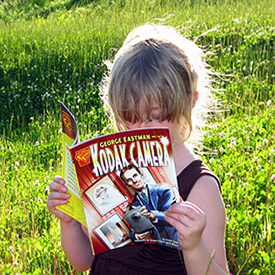 With each new camera comes more questions on photography, art and the general “how do you do that“? Meanwhile, my wife Eve has just returned from a trip to Rochester, NY which included a visit to the George Eastman House – an amazing must pilgrimage for all photographers, whether you like Kodak or not- and purchased a comic book (gotta have a souveneir for the kids!) about George Eastman and the early history of Kodak. I, of course, had to read it (okay, twice) and despite its simplistic narrative it does answer many questions my 8 year old has regarding photography and this “new” Brownie camera she’s received… and it is presented in a manner that is accessable and fun to read. Yes, I know any discussion about Kodak nowadays is fraught with controversy and conflicting opinion but for my daughter it is perfect… and waaay more age appropriate than A World History of Photography by Naomi Rosenblum.